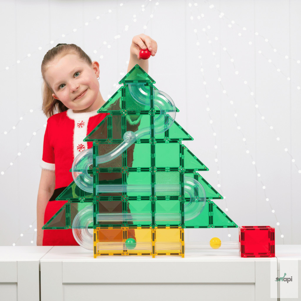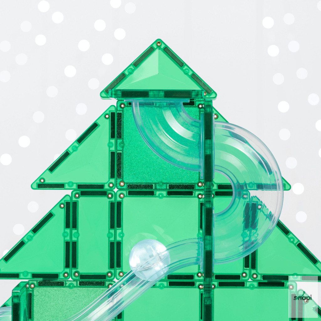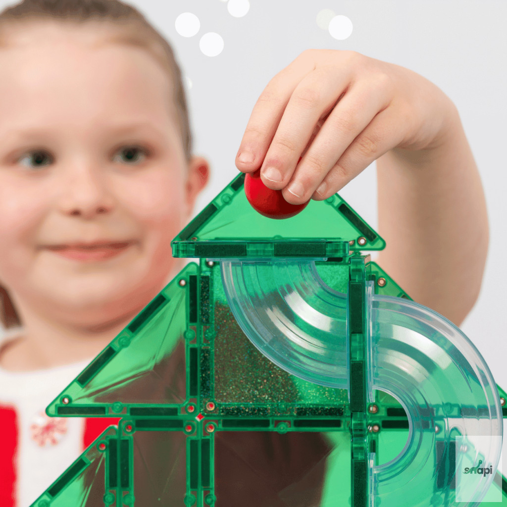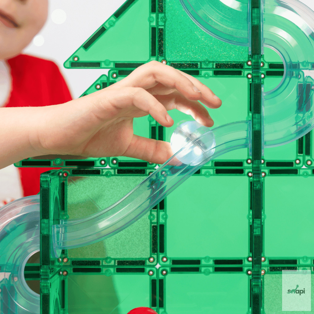 Ez a limitált kiadású csomag exkluzív tervezésű, átlátszó, bordázott csöveket tartalmaz izgalmas darabválasztékban, beleértve az egyenes, csúszdás és spirális darabokat, hogy örömet okozzon a forgó, pörgős labdajátéknak ebben az ünnepi szezonban. A hagyományos karácsonyi színekben – zöld, piros és sárga – válogatott, gondosan válogatott mágneses csempeformákat és összekötő négyzeteket bemutató csomagban egy csipetnyi varázslat is megtalálható, ráadásul zöld csillámos csempékkel – mindazt megtalálod, amire szükséged van egy csillogó fa megalkotásához. A legjobb az egészben, hogy újraépítheted és évekig élvezheted!