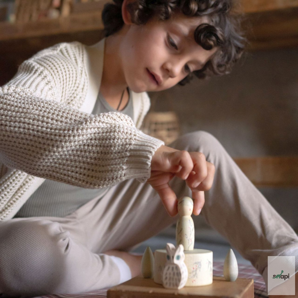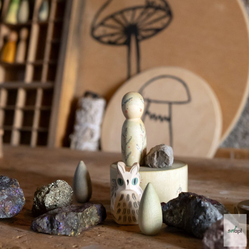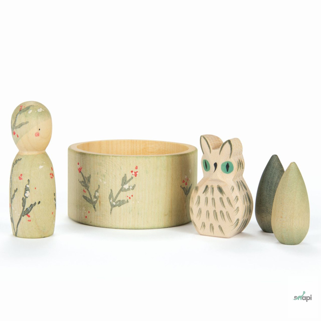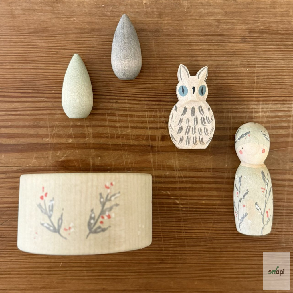 Ez a kis bagoly az Ostheimer és Grapat közös "Hello WINTER" kollekciójának része, amely kézzel készült, kiváló minőségű fafigurákat tartalmaz, és a téli témájú játékokat támogatja. A bagoly gyengéd megjelenése és aprólékos kidolgozása segíti a gyerekek játékos téli fantáziavilágának megteremtését.