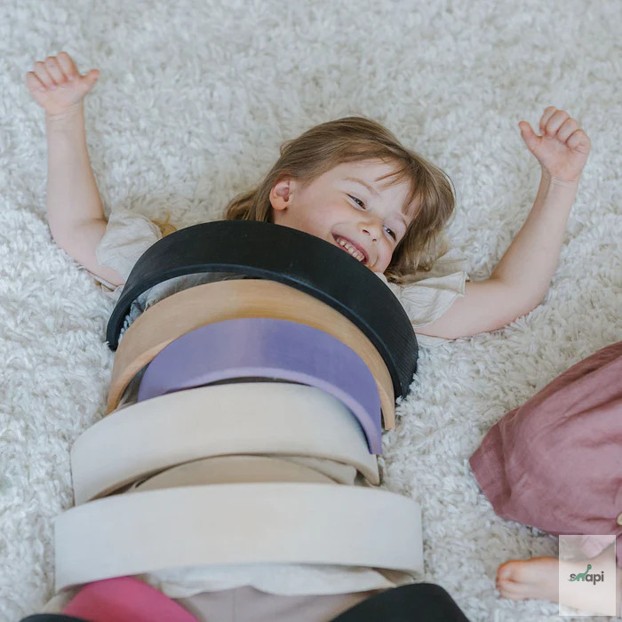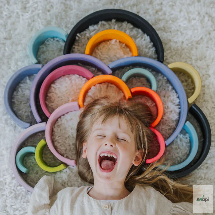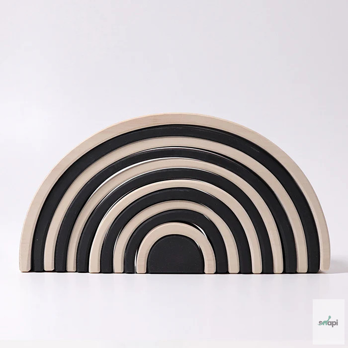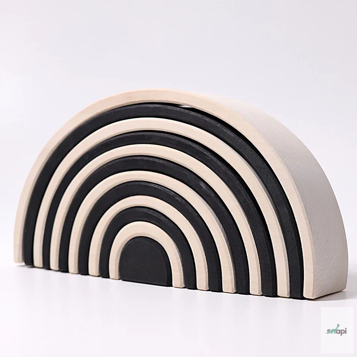 Szülői tipp: A szabad játék ösztönzése érdekében azt javasoljuk, hogy ne az összeszerelt Szivárványt tegyék játékra, hanem ehelyett az egyes íveket vadul dobják egy kosárba. Így a darabok inkább építőanyagként jelennek meg, és az összeállított szivárvány képe nem befolyásolja a képzeletet az összes többi játék és építési lehetőség szempontjából.
