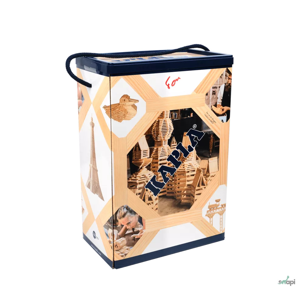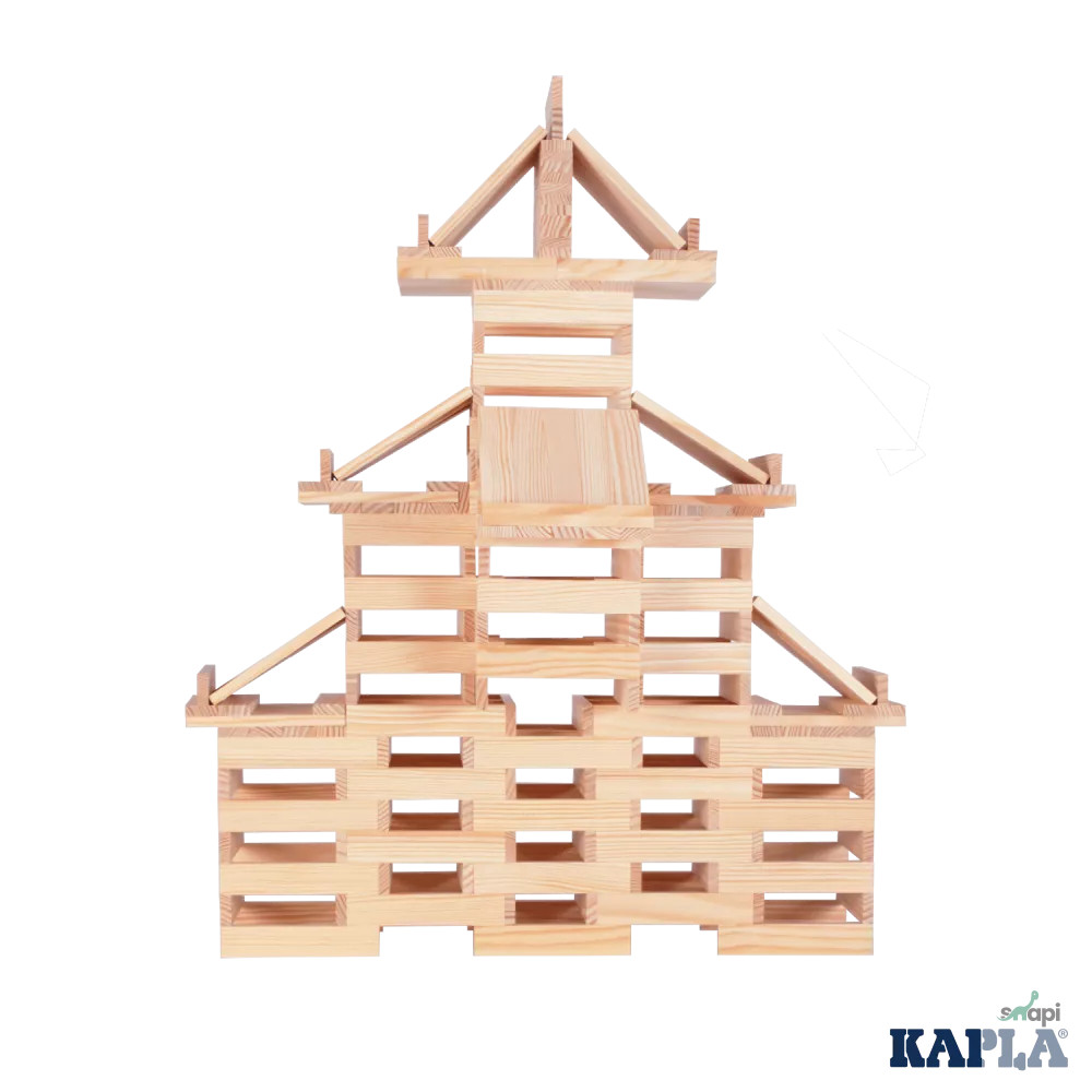 A KAPLA gyűjtői doboz 200 db natúr fa pallót tartalmaz. A márka ikonikus terméke, ez a fajáték generációk óta inspirálja az építőket!