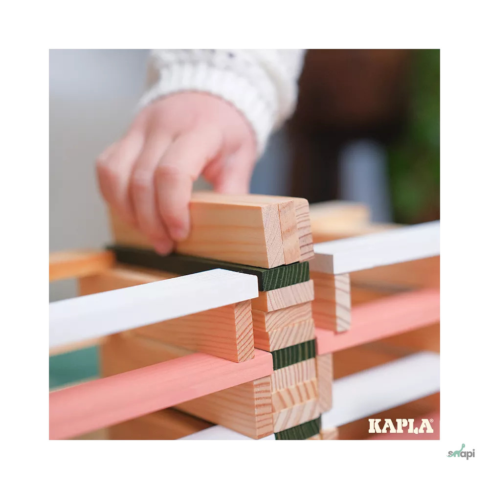 A KAPLA ® pallói  kizárólag fenntartható módon kezelt Les Landes-i (Franciaország) fenyveserdőből készülnek. Színes deszkáikhoz európai szabványoknak megfelelő, élelmiszerbiztonsági festékeket használnak. A gyártás minden szakaszában számos szigorú kézi ellenőrzést végzenek, hogy biztosítsák a tökéletes padlóburkolatokat, amelyek addig fognak kitartani, amíg az emlékeink megmaradnak...