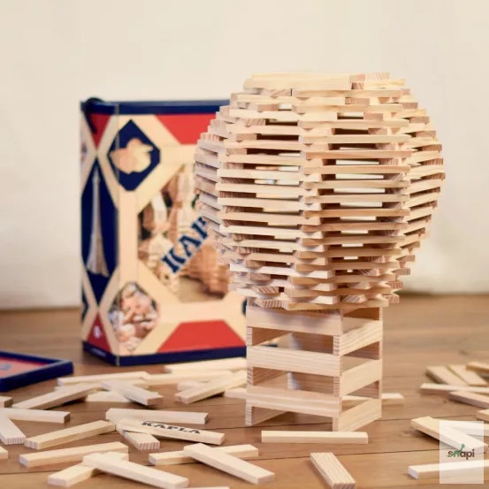 A KAPLA pallók mind azonos méretűek, így az építők végtelen lehetőségeket élvezhetnek a játékban és az alkotásban. A pallók egyszerűen összeszerelhetők ragasztó vagy kapcsok nélkül, így a képzeleted szerint építhetsz.