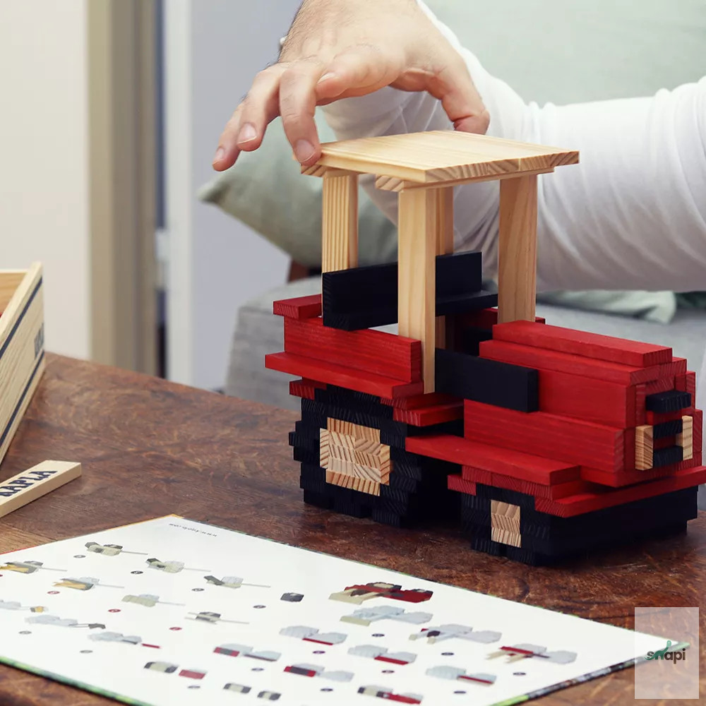 A KAPLA pallók mind azonos méretűek, így az építők végtelen lehetőségeket élvezhetnek a játékban és az alkotásban. A pallók egyszerűen összeszerelhetők ragasztó vagy kapcsok nélkül, így a képzeleted szerint építhetsz.