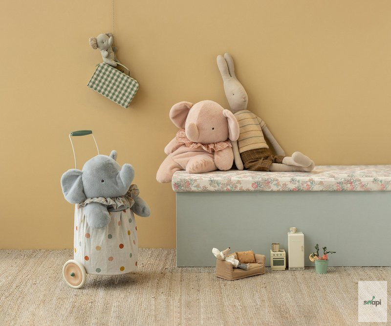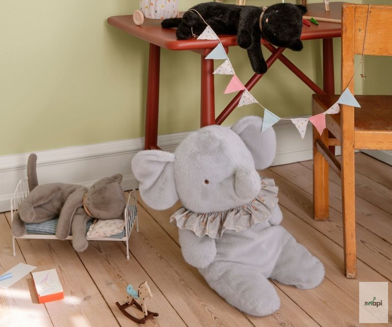 Ez az elefánt a legpuhább plüssből készült, amely kellemes kézérzetet és meleg ölelést biztosít. Magában is elfér, mivel babok vannak az alján.