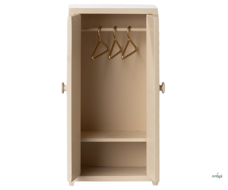 Egy kis szekrény segít az egerek családjának a ruhatáruk rendezésében. A szekrényhez három arany akasztó tartozik.
