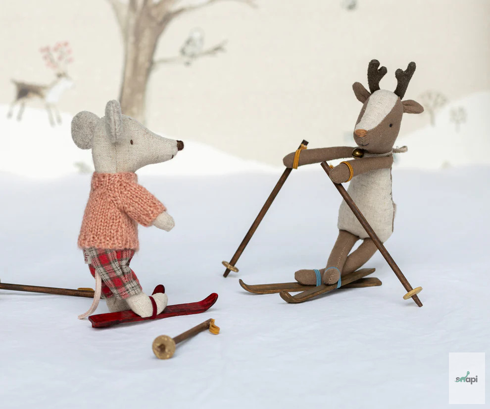 Egy egér, amely órákon át tartó szórakozásra kész a lejtőkön a hideg téli időszakban. Minden játékkészlet tartalmaz egy melegen felöltözött egeret, sílécet és síbotokat. Vicces részlet a fülek, amelyek úgy vannak kialakítva, mintha az egér fülmelegítőt viselne.