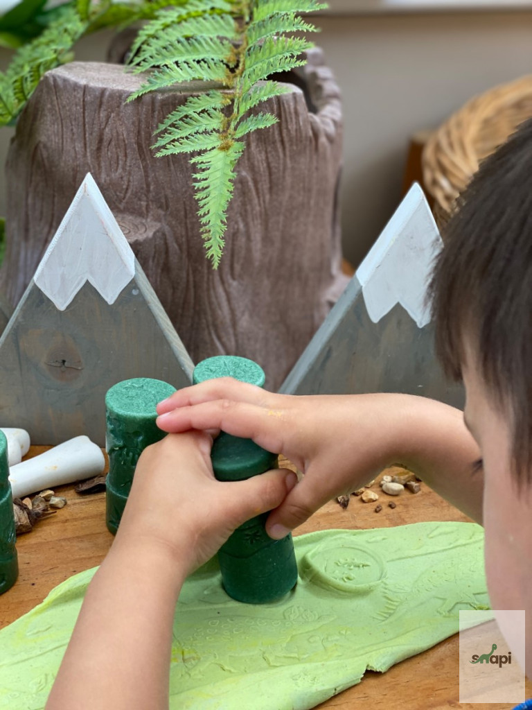 A változó nyomáserősség és a különböző hengerlési módok kísérletezésével a gyerekek játék közben fejleszthetik finommotoros készségeiket, tapintható jeleneteket alkotva kedvenc dinoszauruszaikról ősi élőhelyeiken.