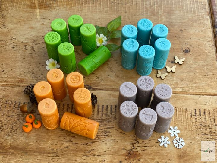 Ezek a gyönyörűen kidolgozott görgők felkeltik a gyerekek kíváncsiságát az évszakok között, fejlesztik a természettel kapcsolatos ismereteiket és megértésüket, valamint a finommotoros készségeiket. Egyszerűen sodord gyurmába, agyagba vagy homokba, és nyomdázd össze a jelenetet. További részletek derülnek ki, ahogy a gyerekek erősebben nyomják. A csomag hat tematikus görgőt tartalmaz minden évszakhoz. Ez a készlet 24 görgőt tartalmaz, amelyek végigvezetnek az éven!