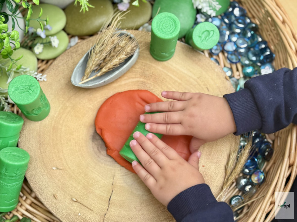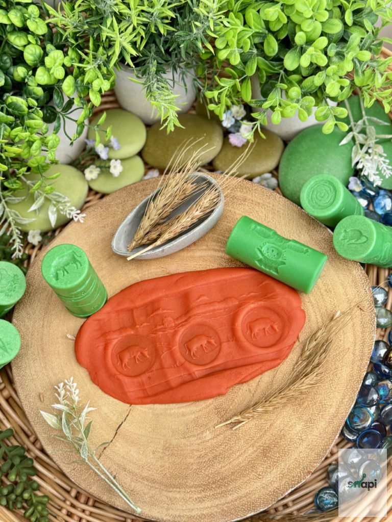 A görgőkre nehezedő nyomás változásával és a gyurmában, agyagban vagy homokban való különböző irányokba görgetéssel kísérletezve a gyerekek fejleszthetik finommotoros készségeiket, tapintható mezőgazdasági képeket alkotva, amelyeket kiegészíthetnek a bélyegzők használatával. Pakolj szénabálákat a traktor utánfutójára, ültess sárgarépát a földbe, és tedd be a tyúkokat a tyúkólba.