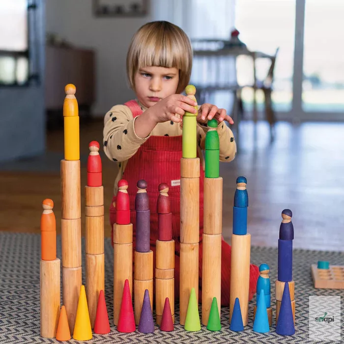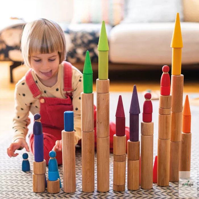 Motor skills are encouraged with the Stacking Game and there is lots to discover with the various color sorting