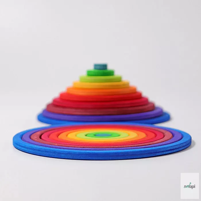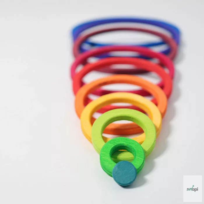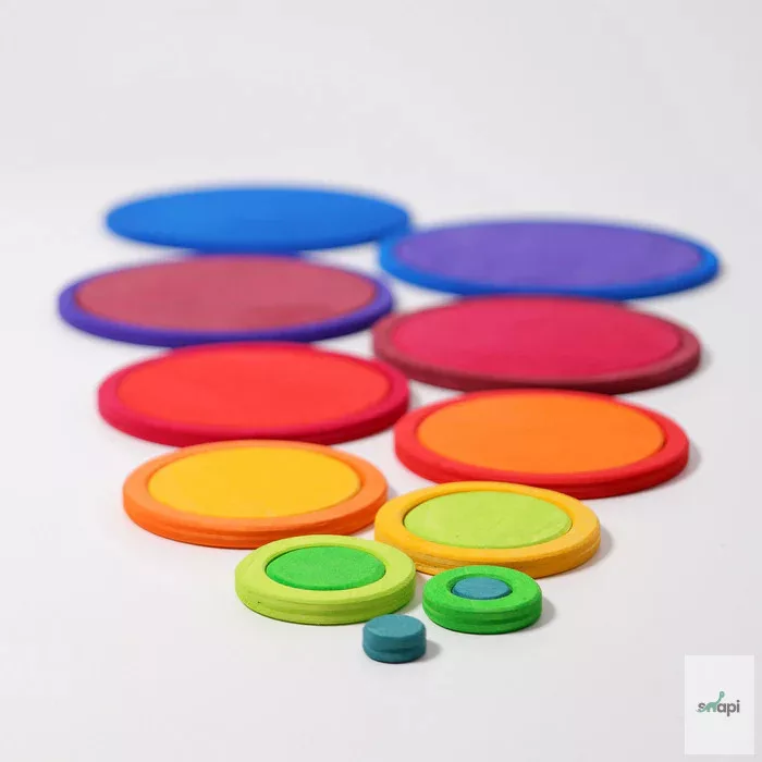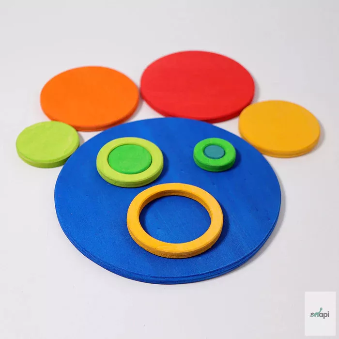 Ten circles and ten rings in different sizes and colours invite you to have lots of fun building and playing. With a love of experimentation and a sure instinct, balance games, airy buildings and multifunctional platforms can be created.