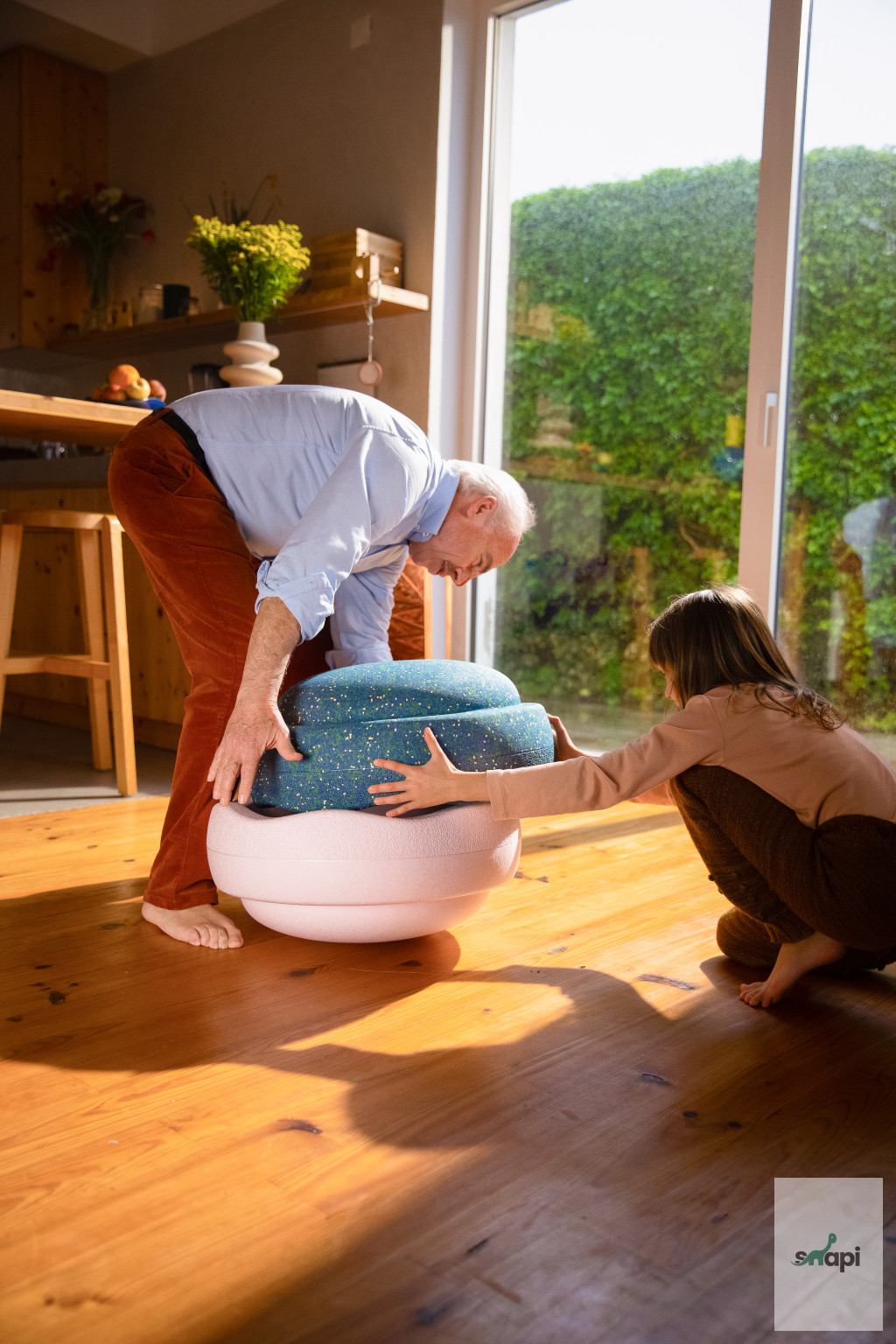 Adults enjoy using Stapelstein® elements as dynamic stools, steppads, yoga blocks and more.
