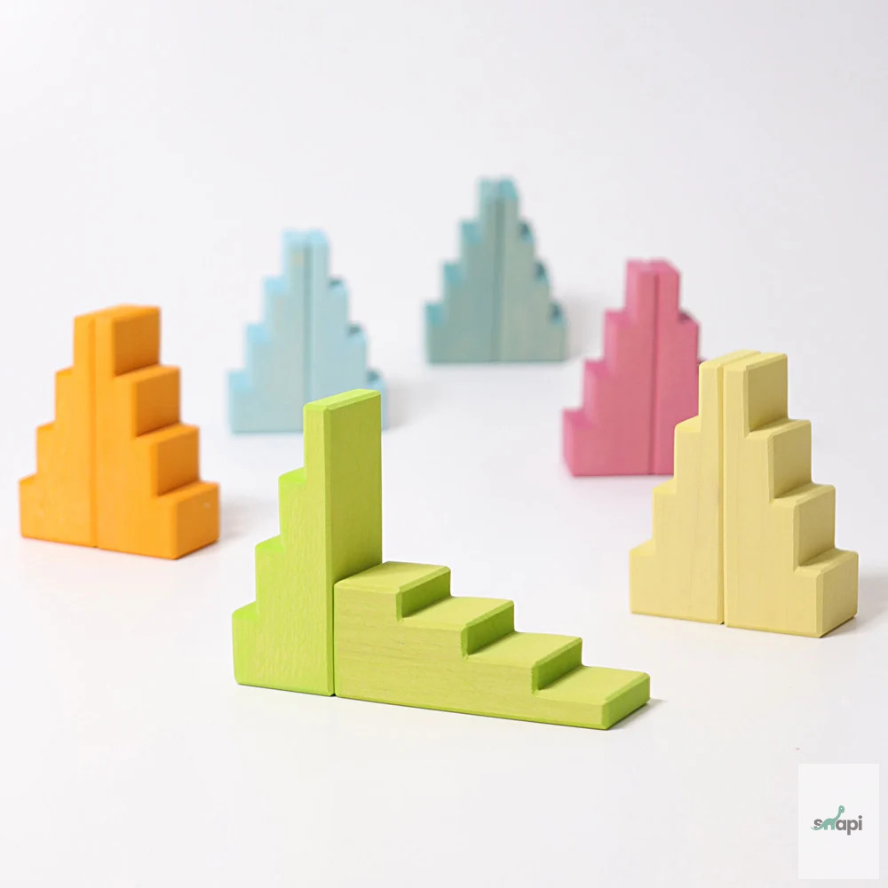 Set of 12 wooden stairs in the colors of the pastel