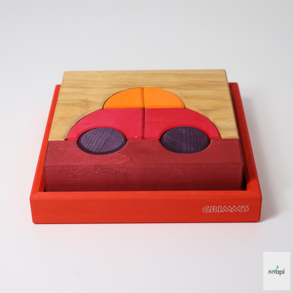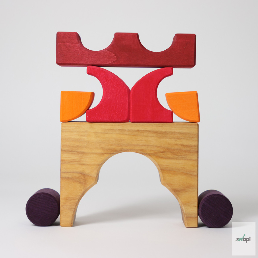 Red like ... a racing car. The car in bright red draws attention to itself in an active and self-confident way. Outside the frame, the symmetrical building blocks become royal and colourful sculptures. Building Set Red is part of our four Colour Building Sets. With their large pieces, they are made for the smallest hands. The colour variations provide an initial introduction to the primary and secondary colours and their different effects.