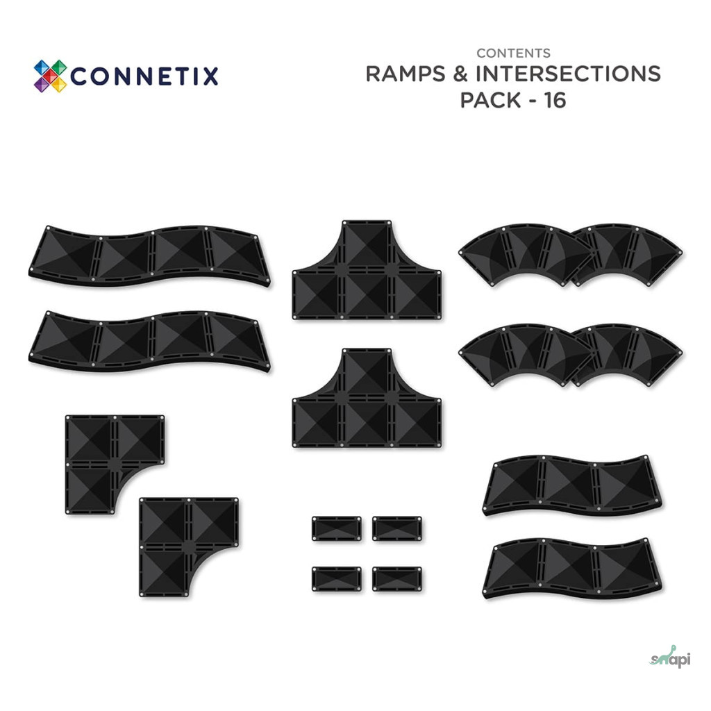 A CONNETIX 16 darabos Emelkedők és kereszteződések csomagja exkluzív, út ihlette mágneses építőformákat tartalmaz, beleértve a kanyarokat, boltíveket, kereszteződéseket és rámpákat, mindezt elegáns fekete árnyalatban. A végtelen építési kalandok megélésére tervezték: gördeszkaparkok, versenypályák, dominók és még hullámvasút létrehozását is biztosítja.