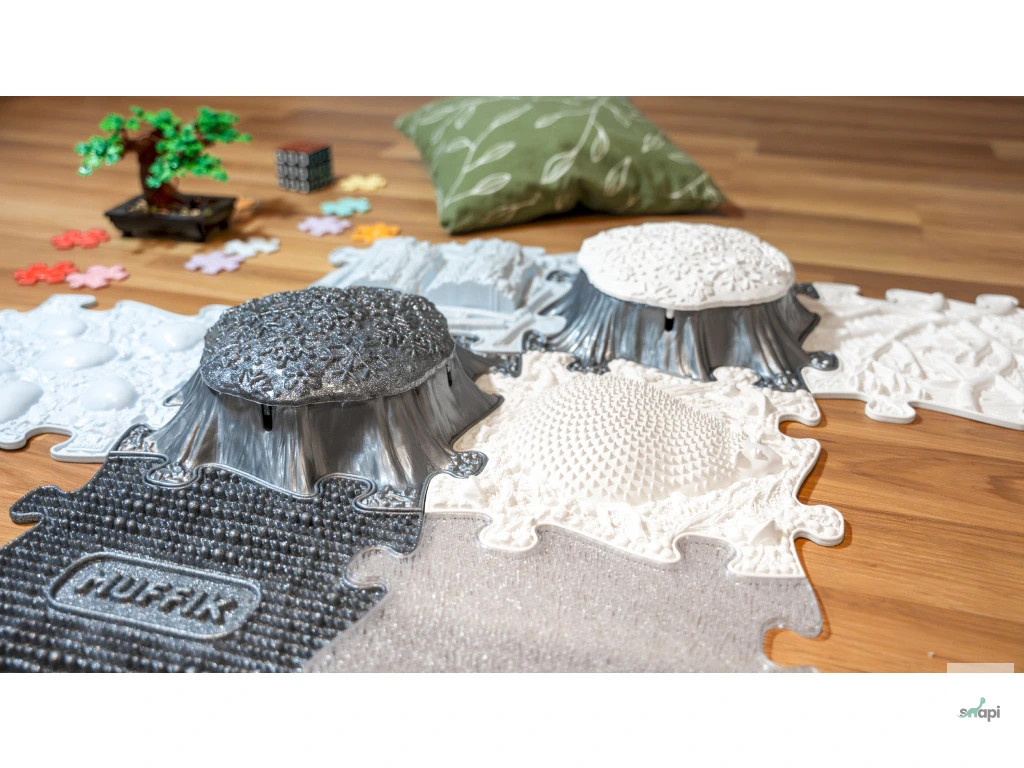 Thanks to its unique shape and design, the Snowflake offers not only visual appeal, but also practical benefits. When placed on a stump , it creates a non-slip, raised orthopedic surface that brings new possibilities for use for children and adults.