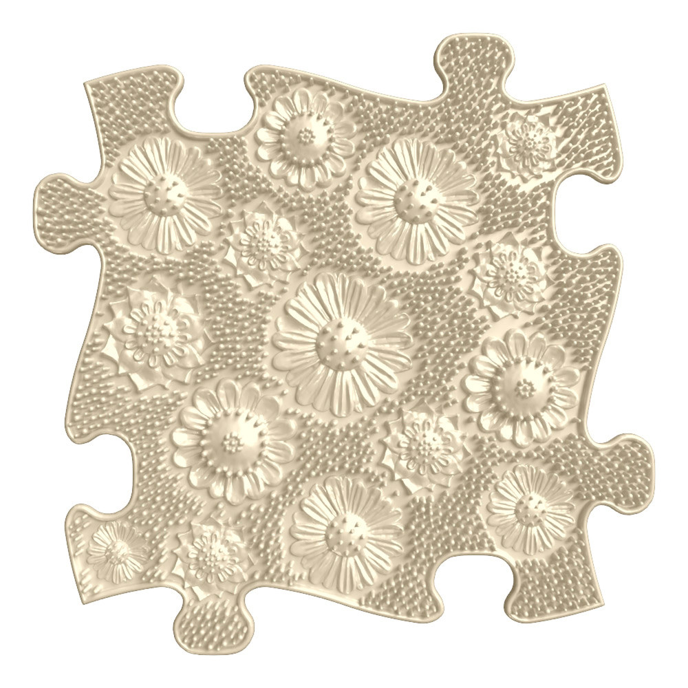The pieces of the MUFFIK sensory orthopedic carpet are inspired by the elements of nature. Stones, tree trunks, grass, pebbles, shells - these can all be found on the individual pieces and are so lifelike that it is a pleasure to step on them.