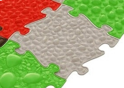 The puzzle, covered with pebbles of various sizes, intensively massages every millimeter of the foot and maximizes blood circulation, which is especially important, for example, for those who have just started walking. For older children, this stimulates the foot and nicely exercises the longitudinal and transverse arches of the foot. In adults, it promotes venous gymnastics, which is important in the fight against thrombosis and varicose veins.