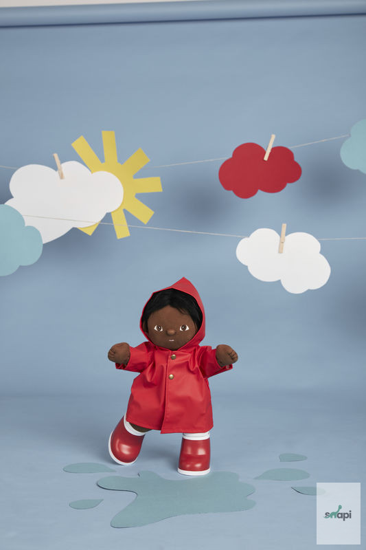 With its Dinkum sized rain hood and mini Rainboots in a playful Red colourway, the Rainy Play set is FUN, waterproof {yay for that!} and perfect for wet weather adventures!!