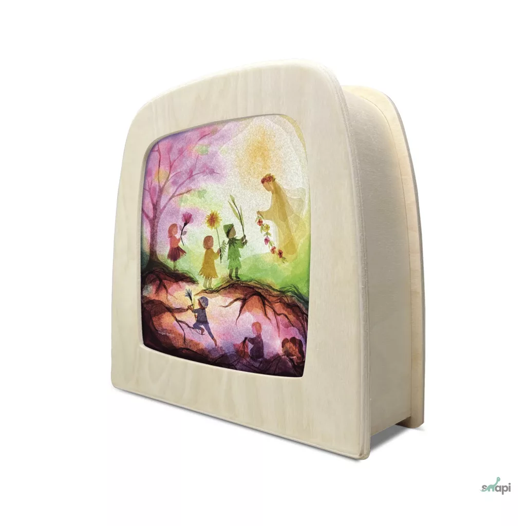 Product label: FAIRY LAMP, SEIZON LAMP, LUMINAE, HET HOUTLOKAEL, TOVERLUX, BIJDEHANSJE, DANIELA DRESHER, EENTJE VAN MARGO,IRIS ESTHER, MONTESSORI LAMP, CHILDREN'S ROOM, DECORATION, GIFT, BIJDE, MOOD LIGHT